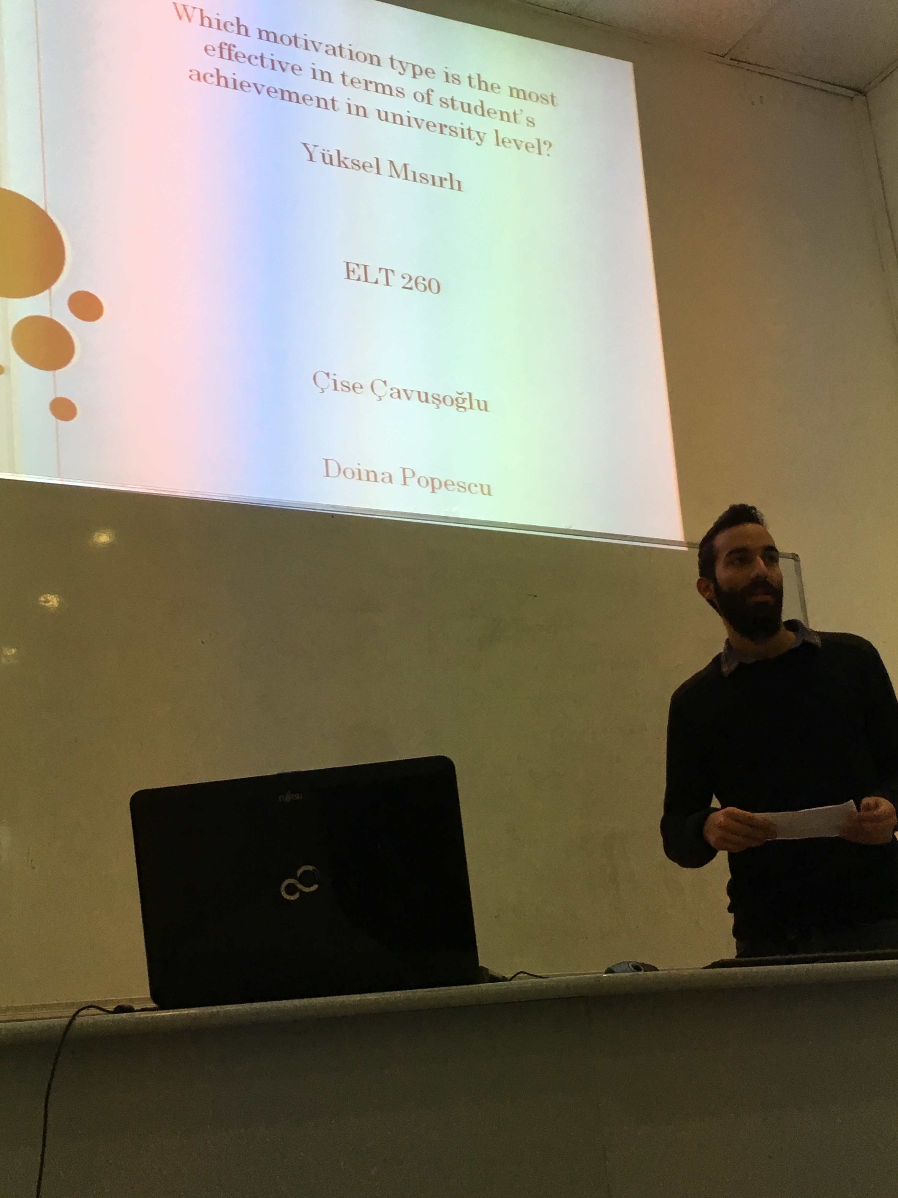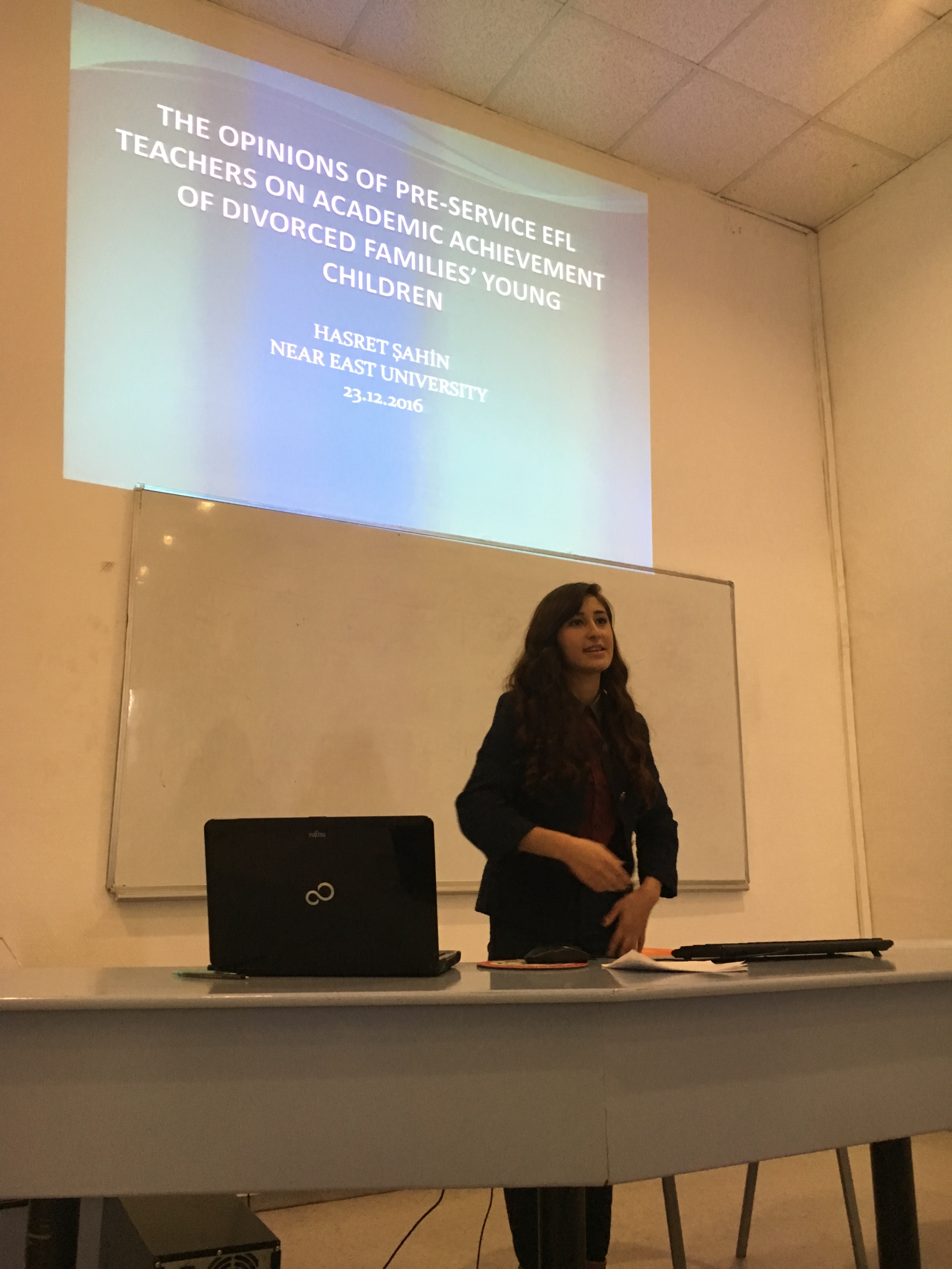 The 1st Undergraduate Research Day, organised by the Departments of English Language Teaching and English Language and Literature took place on the 23rd December 2016. Twleve presentations were given by ELT 260 – Scientific Research Methods and ELL 406 - Research Methods and Paper Writing students, where they shared the results of their empirical studies with the audience.